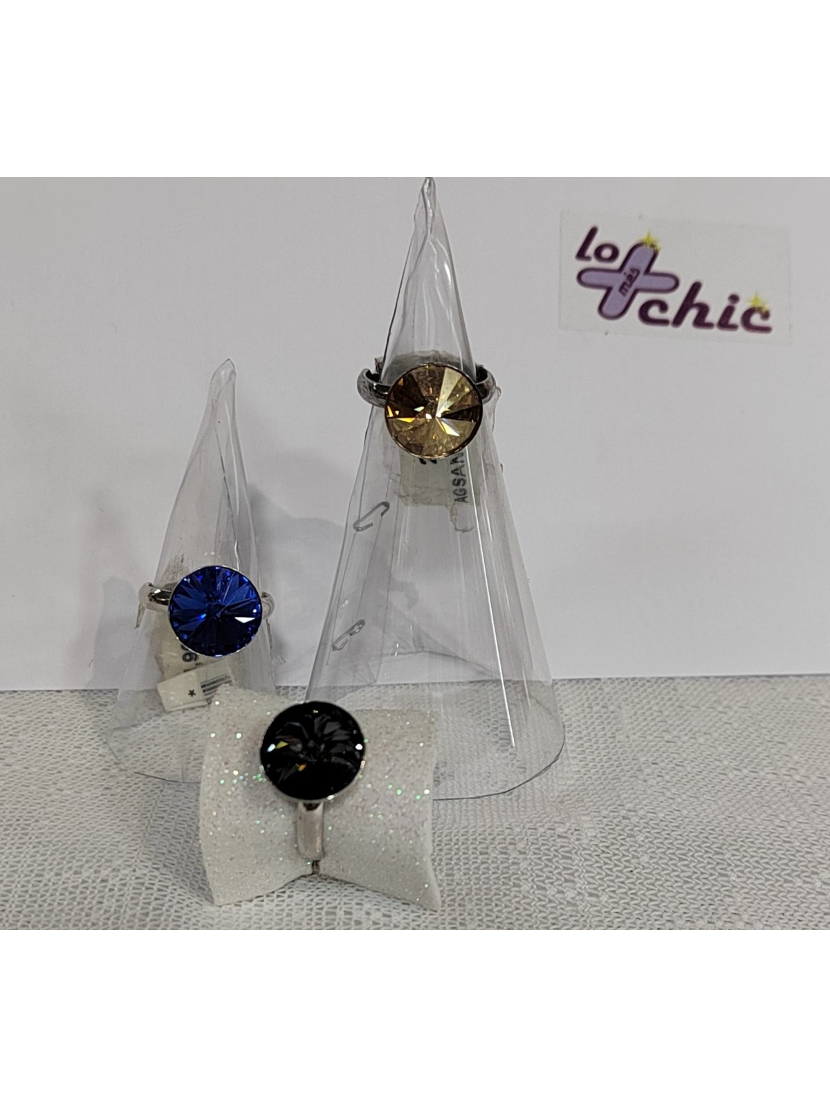 Anillo de plata ajustable con elemento de Swarovski.