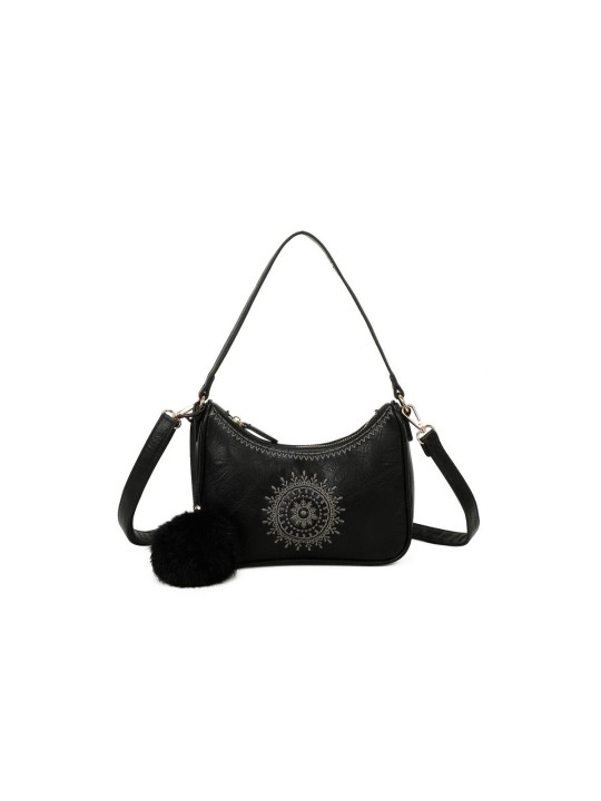 Bolso bandolera con borla del mismo color y bordado de sol-T11700 -