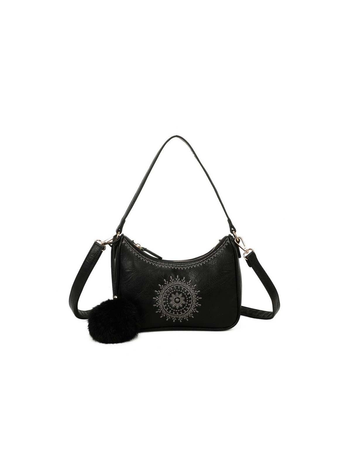 BOLSO PEQUEÑO CON ASA BANDOLERA Y BOLA DE PELO