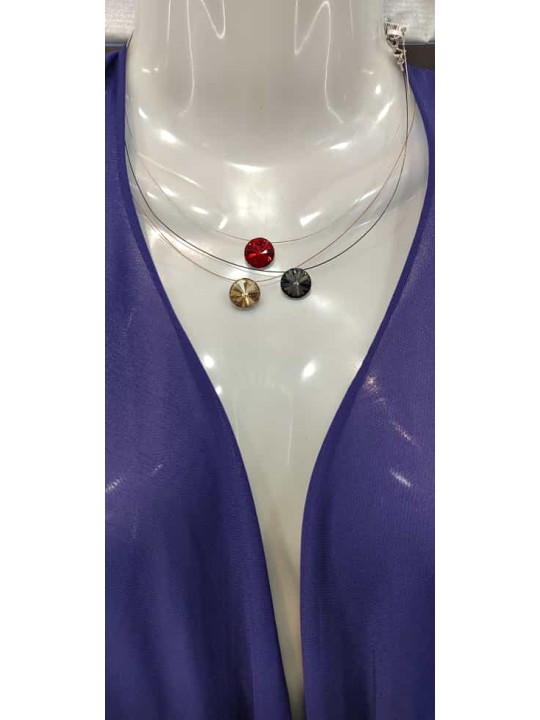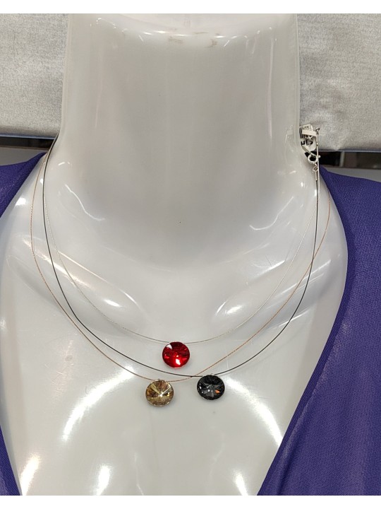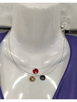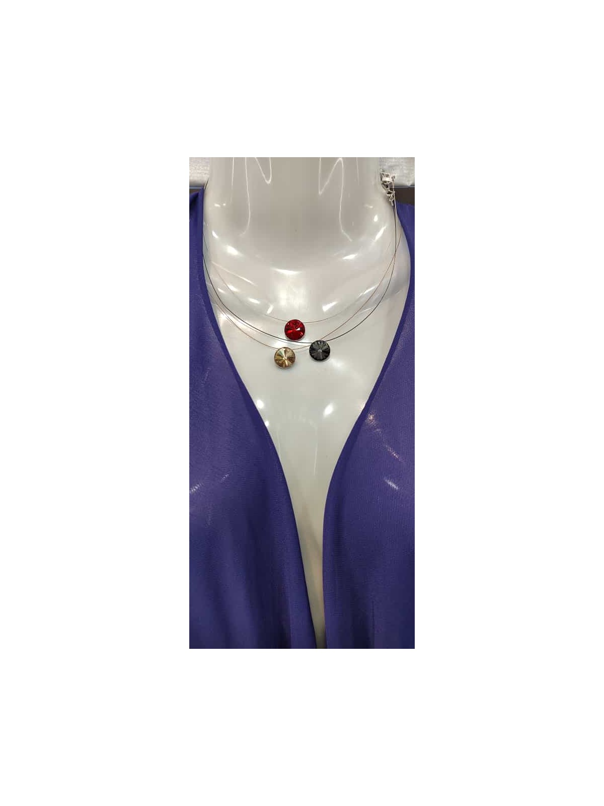 Collar con hilo de acero muy discreto pero que que por su brillo destaca y te hace llamativa una gargantilla espectacular ,la pieza de cristal Swarovski está embolsada con plata de 1º Ley.