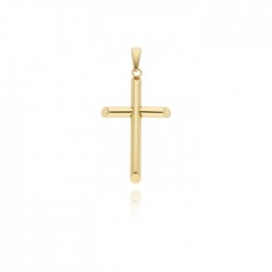 Cruz de tubo liso con baño en oro de 18 klt. Medidas 6 x 3.8 cm.