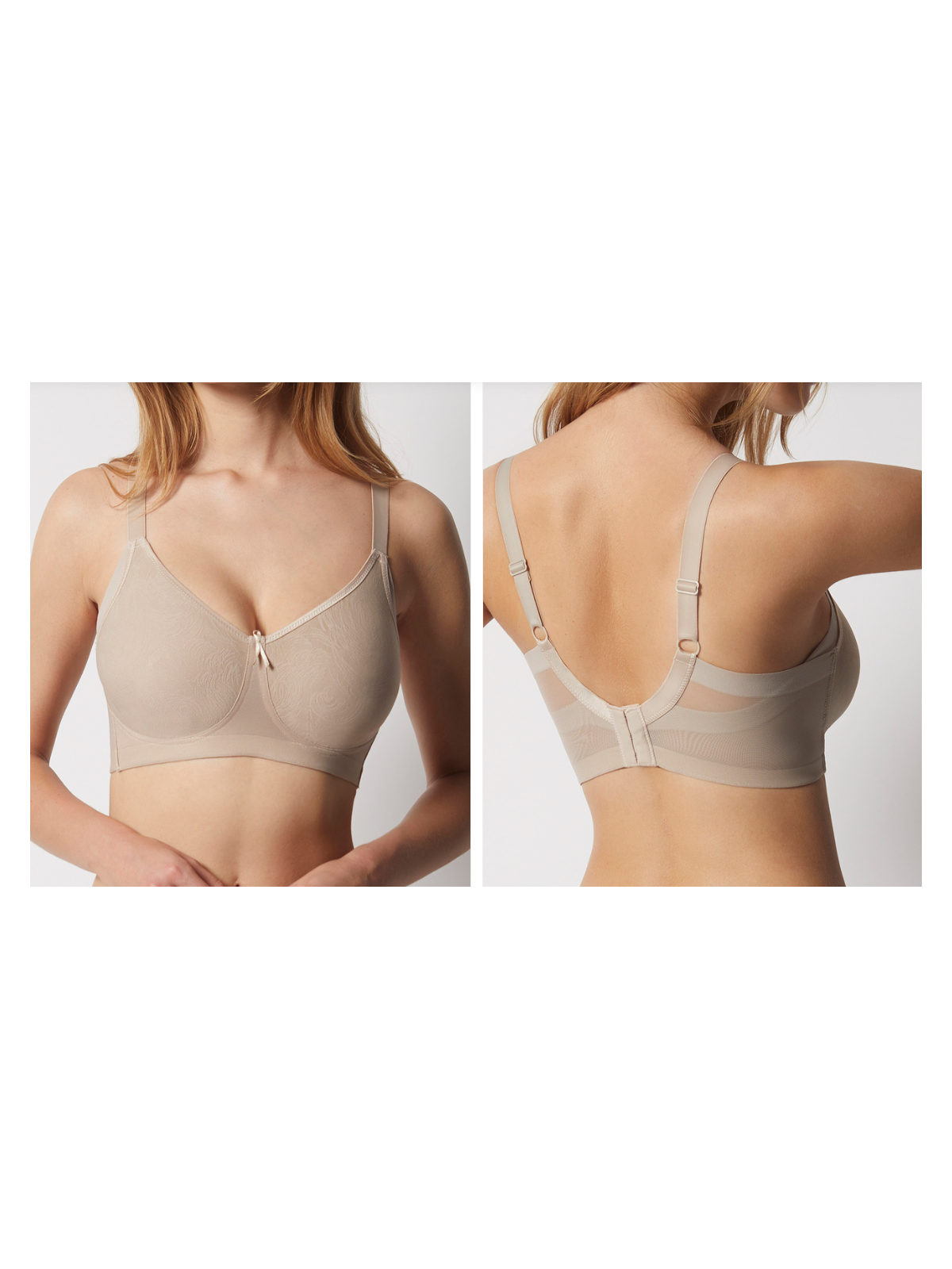 Sujetador sin aros, sin relleno. Lleva un cruce de tules lateral con corte láser, especialmente diseñado para cubrir y minimizar las irregularidades del costado y las axilas proporcionando una cobertura perfecta. Alisa y estiliza tu figura.