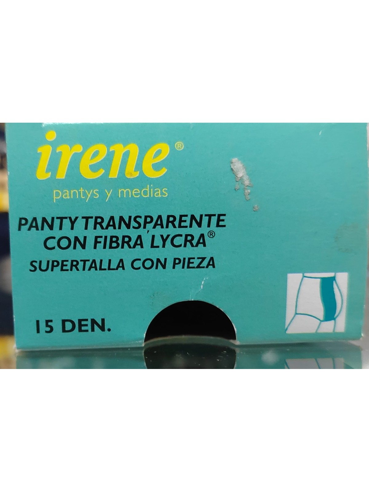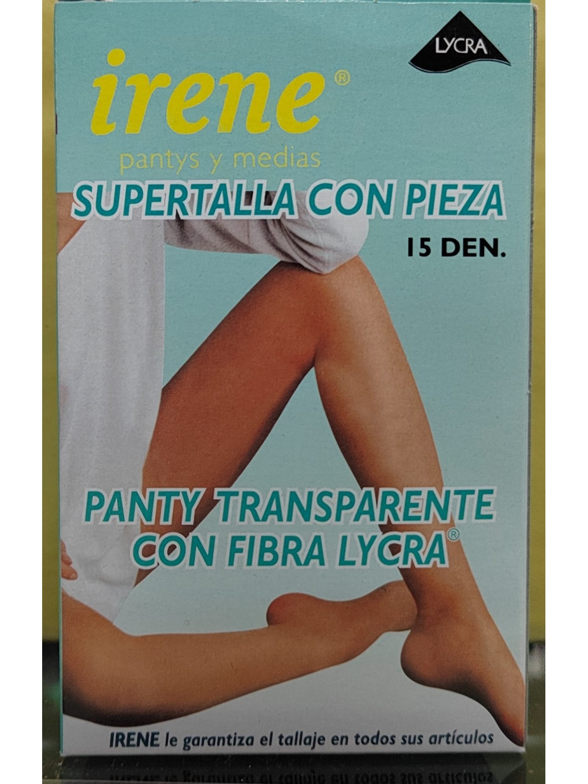 Panty transparente con fibra LYCRA de la marca IRENE. Supertalla con pieza.