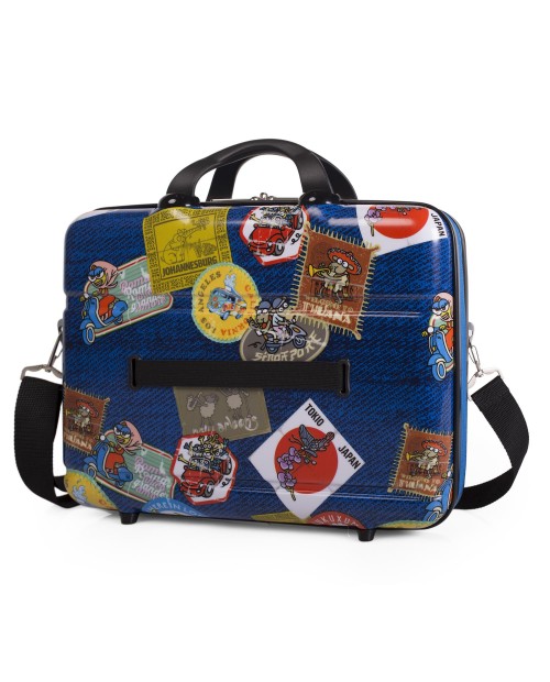Maleta de policarbonato, dura, sin ruedas para ser colgada en forma de bandolera gracias a su corre ajustable del tipo portadocumentos.